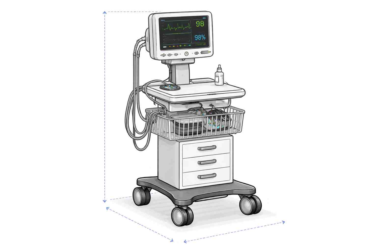 Our Medical Equipment Covers are designed to safeguard hospital equipment such as patient monitors, diagnostic carts, ultrasound machines, and medical workstations from dust, spills, and environmental exposure. These covers help maintain hygiene standards and protect expensive medical devices when they are not in use. Durable Waterproof Fabric The covers are constructed from high-quality waterproof and dust-resistant material that prevents moisture, dirt, and contaminants from reaching the equipment. The fabric also provides resistance against mild disinfectants commonly used in medical environments. Designed for Medical Carts and Equipment Stations These covers are ideal for mobile medical carts, patient monitoring systems, and diagnostic machines. The fitted design ensures full coverage of the monitor, equipment tray, and base while maintaining easy access when needed. Hygienic Protection for Healthcare Environments In hospitals, clinics, and laboratories, protecting equipment from contamination is critical. These covers help maintain clean storage conditions, especially in operating rooms, ICU units, diagnostic labs, and medical storage areas. Secure and Functional Design The cover includes adjustable hems or fastening options to ensure a secure fit around medical equipment. It stays firmly in place while still allowing easy removal when equipment is required.