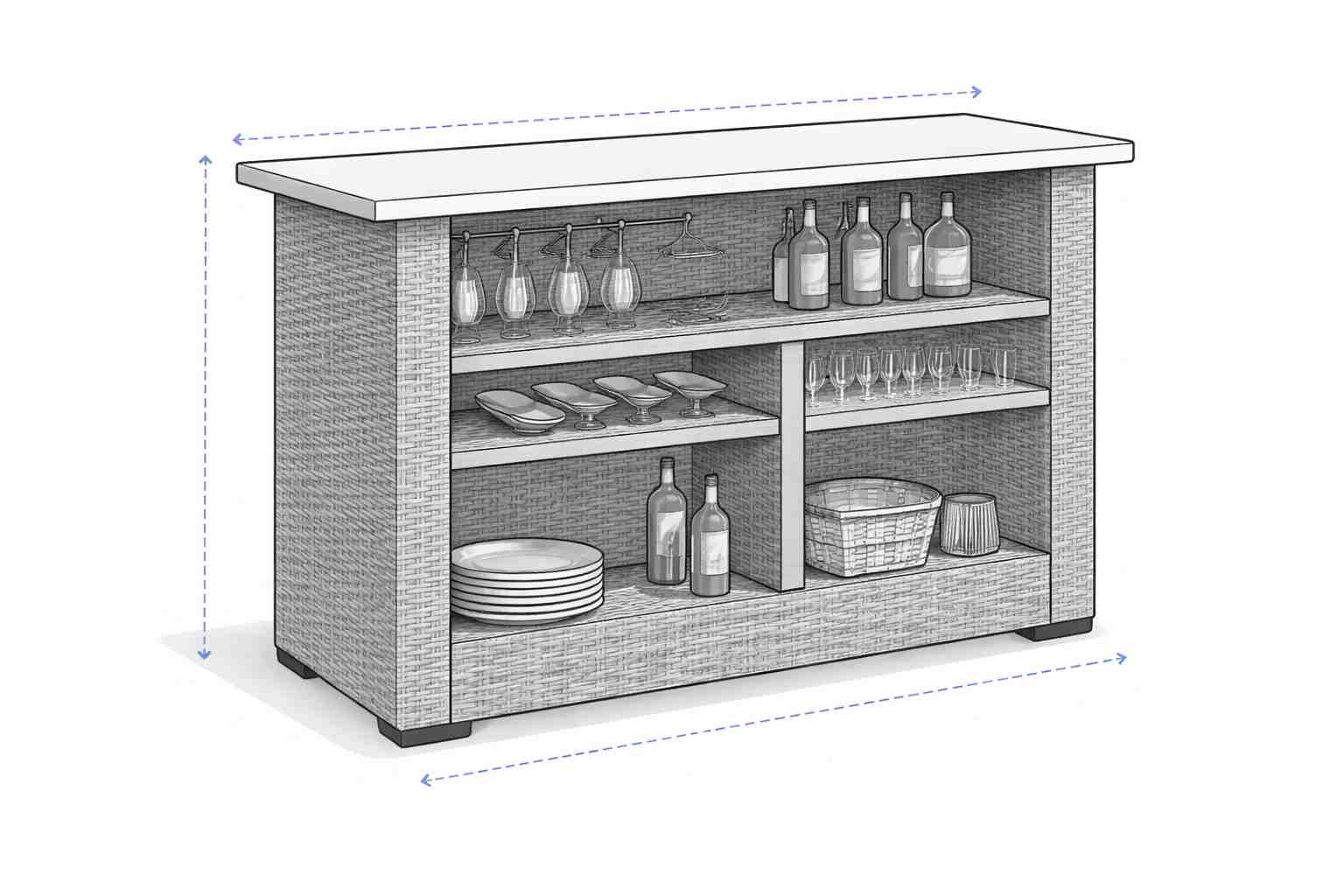 Our Outdoor Bar Covers are specially designed to protect outdoor bar counters, serving stations, drink bars, and patio bar tables from harsh weather conditions. Whether placed on a patio, terrace, poolside, or backyard entertainment area, these covers help maintain the appearance and durability of your bar furniture. Heavy-Duty Waterproof Material The covers are crafted from premium waterproof and weather-resistant fabric that protects against rain, moisture, dust, and UV exposure. The coated material prevents water penetration while allowing the cover to withstand outdoor environments for long periods. Ideal for Outdoor Entertainment Areas Outdoor bars are often exposed to sunlight, wind, and debris. Our covers provide full coverage protection, keeping your bar surface, shelves, and storage compartments protected when not in use. Secure Fit for Windy Conditions Each cover features adjustable drawstring hems or fastening straps to ensure a snug fit around the bar unit. This helps keep the cover secure even during windy weather, preventing it from slipping off. Durable and Long-Lasting Construction With reinforced stitching and durable seams, these covers are designed for long-term outdoor use. The fabric maintains its strength and protective qualities throughout different seasons.